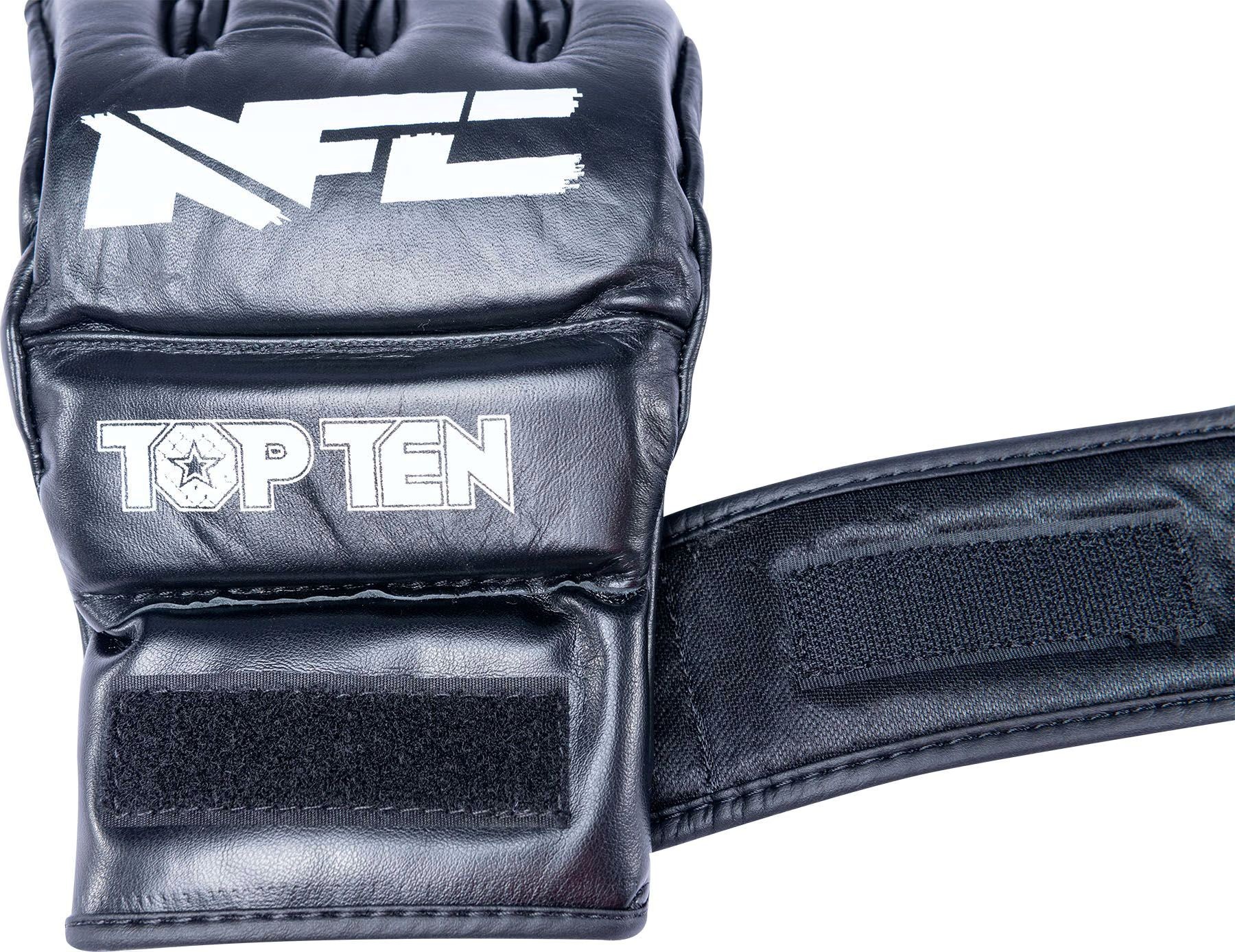Hazır olun ve NFC dövüşleriyle MMA kariyerinize şimdi başlayın. Kafeste güvenlikten ödün vermemek için TOP TEN, sizin için “NFC” eldivenlerini tasarladı. Açık parmakları ve ek başparmak koruması olmamasıyla bu güvenlik ekipmanı, yüksek güvenlik seviyesiyle size tam özgürlük garanti eder. Elin dışındaki bölünmüş koruyucu bölgeler hareketlerinize uyum sağlar ve size ve rakibinize istemeden yüksek yaralanma potansiyeline karşı yeterli koruma sağlar.