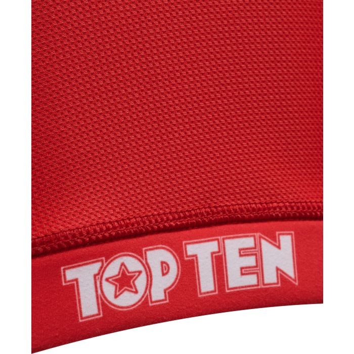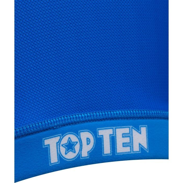 TOPE TEN, sizin için kırmızı ve mavi yarışma renklerinde klasik “WAKO” büstiyerini sunuyor. Arkasındaki WAKO onaylı etiket, kurallara uyduğunuzu garanti eder. Bu, mükemmel bir donanıma sahip olduğunuz ve bu sportif üstle sadece tam temaslı sporlarda değil, etkileyici bir görünüm sergileyebileceğiniz anlamına gelir. Nefes alabilen polyester lifler, fitness ve boş zaman aktivitelerinde de güçlü yönleriyle etkileyicidir.